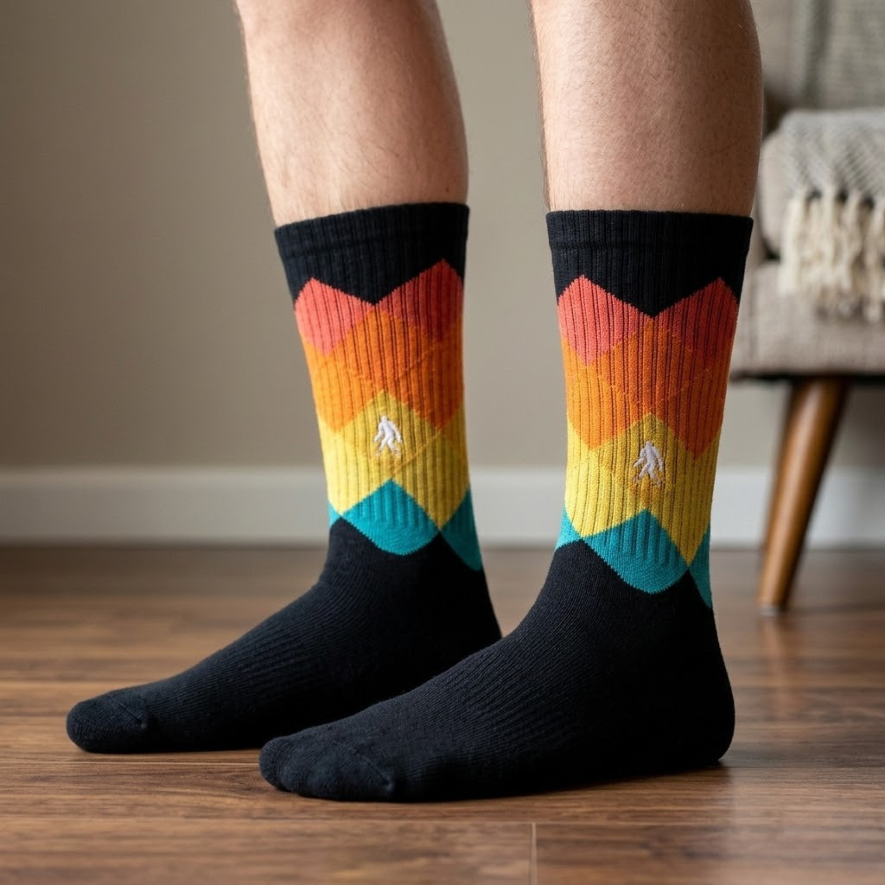 Step into the ultimate time machine for your feet with Retro Sunset Active Socks by Bigfoot Sock Co. These socks are so stylish, even Bigfoot himself would ditch his fur for a pair!