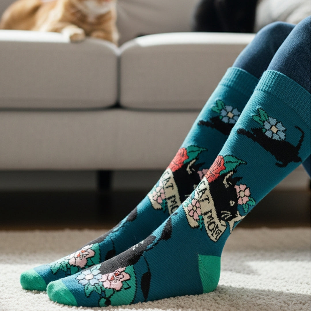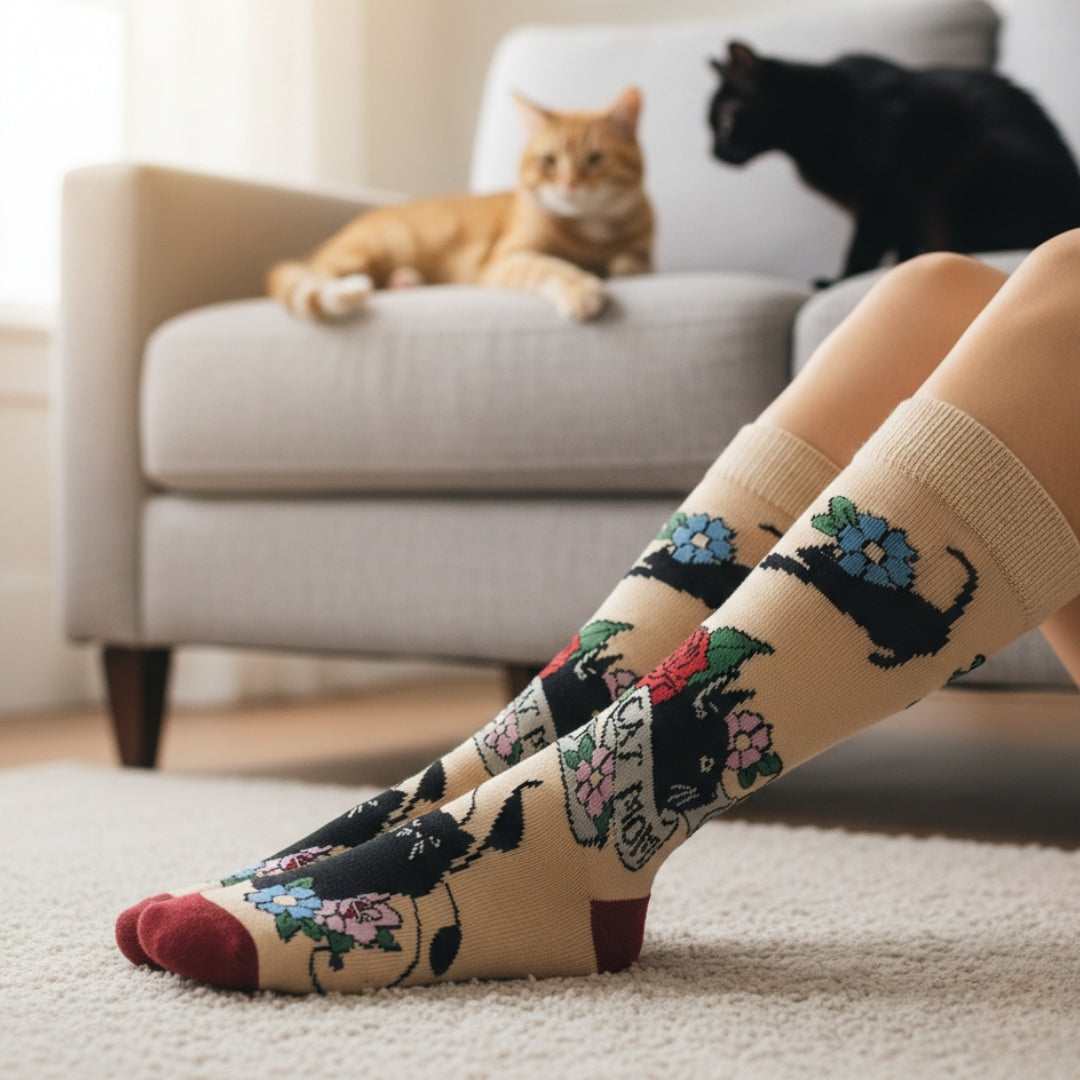 Proud, cozy, and full of cat love. These Cat Mom socks feature charming, tattoo-inspired cat artwork—perfect for showing off your cat-mom pride in comfort and style. 🐾🧦