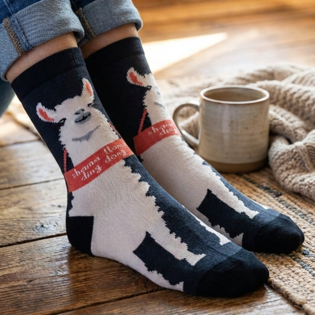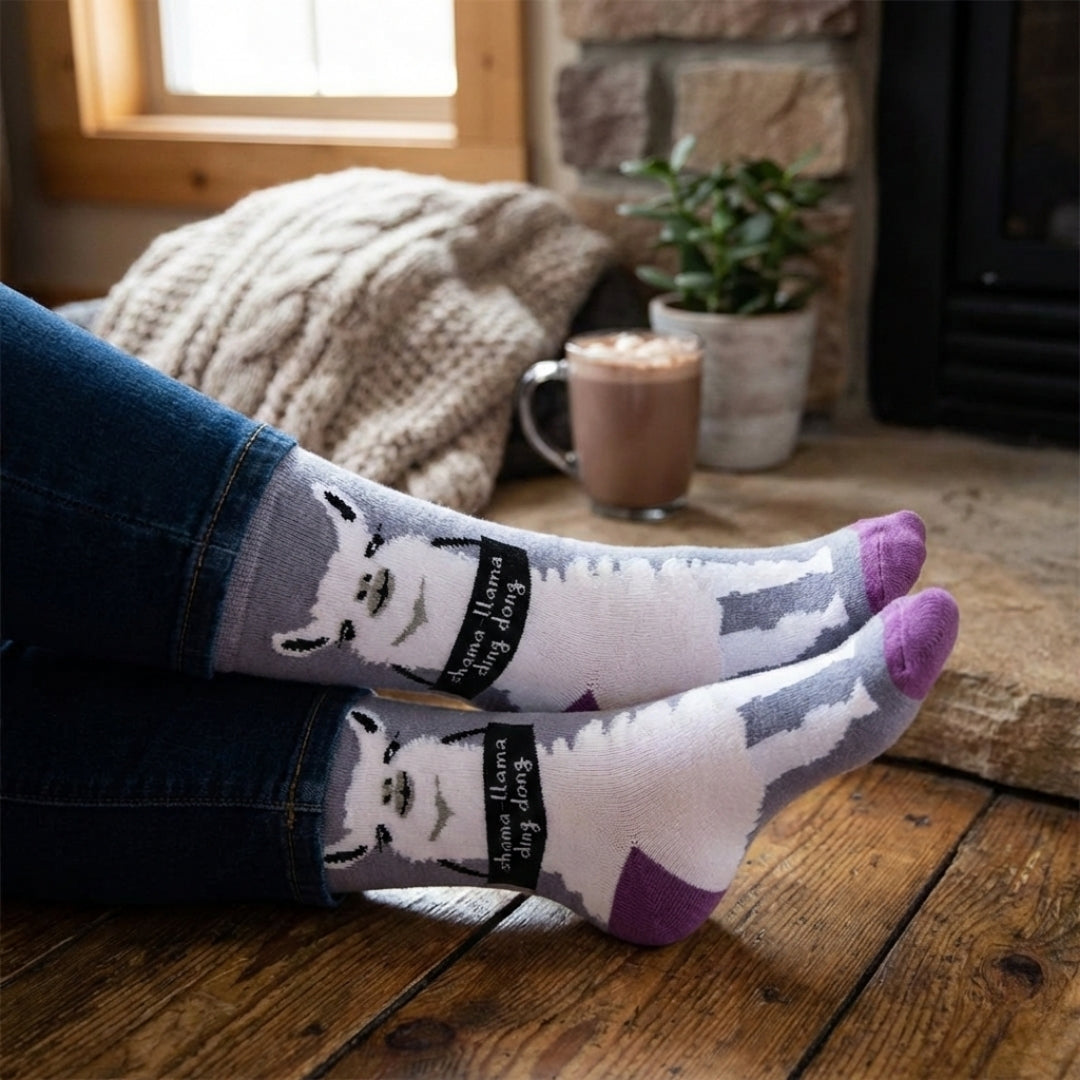 Bold, playful, and full of personality. These Shama Llama Ding Dong socks bring lighthearted humor and cozy comfort to your everyday look—perfect for anyone who doesn’t take life (or their socks) too seriously. 🦙🧦