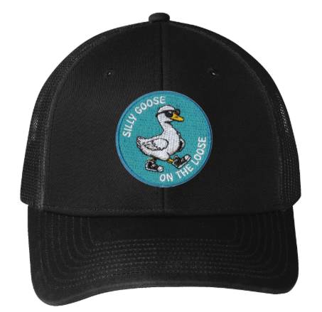 Built on a classic structured trucker frame, this all-black cap keeps you looking cool while you're out causing harmless trouble. The breathable mesh back ensures you stay comfortable whether you're running errands or actually on the loose, while the adjustable snapback guarantees a secure fit for every goose in the flock.