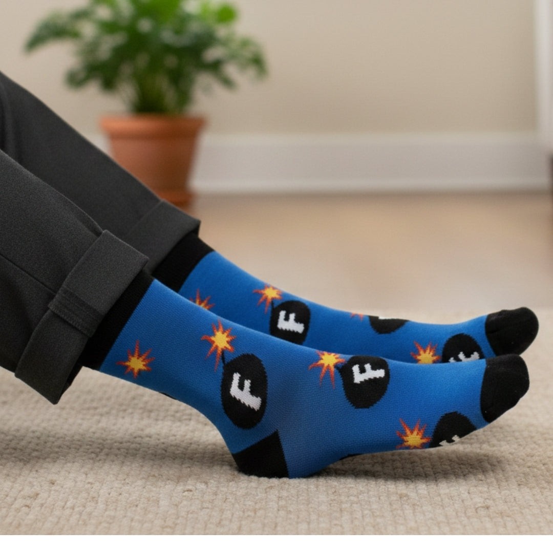Get ready to drop some serious F bombs with Sock Harbor's explosive collection! These socks are the perfect way to add a touch of humor and style to your wardrobe, while keeping your feet cozy and comfortable.