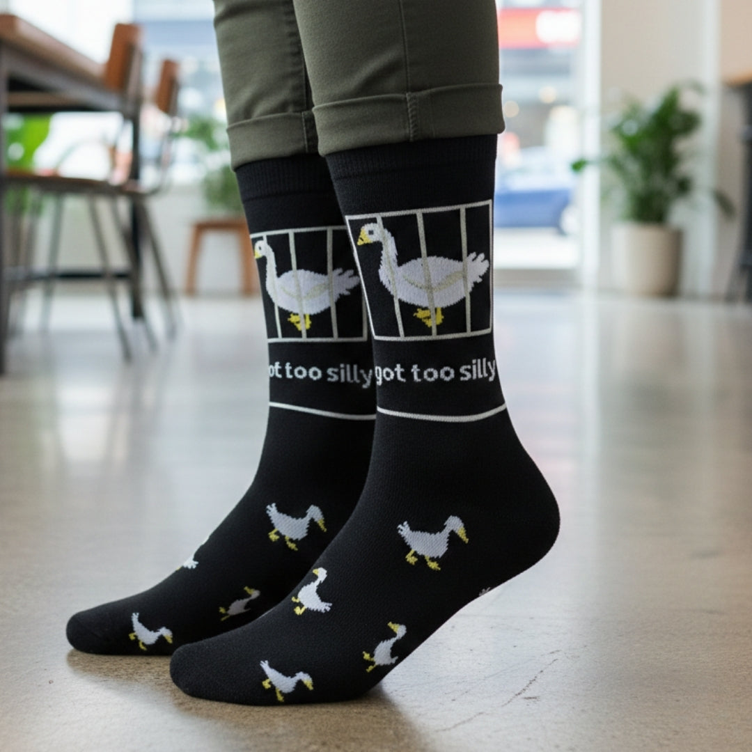 Goose Got Too Silly Socks are the perfect way to add a touch of whimsy to your sock collection. Made with high-quality materials and vibrant colors, these socks are sure to make a statement. Shop now and step up your sock game with Goose Got Too Silly Socks from Sock Harbor.