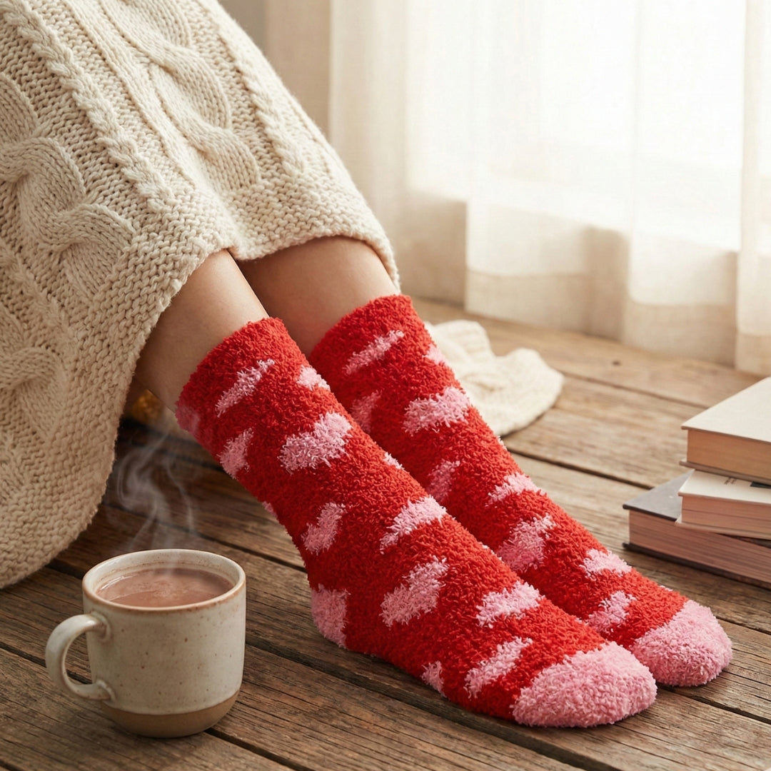 Ultra-soft, warm, and made for cozy moments. With plush fabric and sweet heart details, these fuzzy socks are perfect for relaxing at home, sipping something warm, and wrapping your feet in a little love.